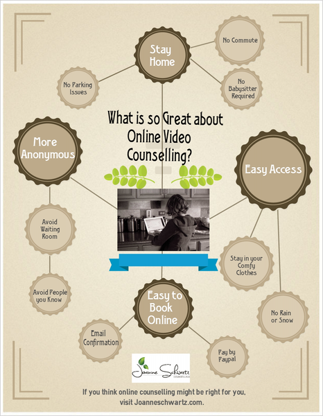 Online video counselling can offer a great alternative to face-to-face sessions. Some people prefer it because they feel more comfortable in their own space and because it gives them more anonymity which can reduce some of the stress or anxiety associated with counselling.