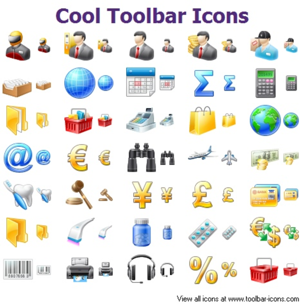If you want to give your software and web projects a professional look, Cool Toolbar Icons provides you with an extensive package of different types of icons designed for modern applications. Professionally designed and offering you guaranteed results, these icons come in a number of different color depths, sizes and image formats. Each icon in the package is provided in three variations - for normal, disabled and highlighted state. Author: toolbar-icons.com Icon quantinty: 101 Icon sizes: 256x256, 48x48, 32x32, 24x24, 16x16 File formats: PNG, GIF, BMP, ICO Image states: normal, hot, disabled Download source: http://www.toolbar-icons.com/stock-icons/cool-toolbar-icons.htm