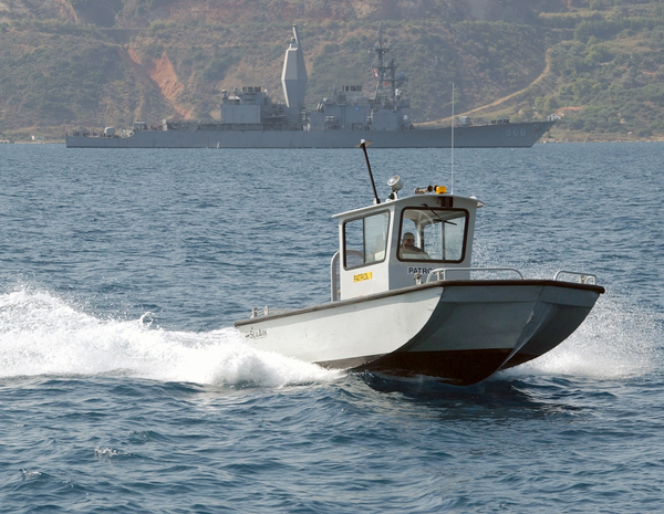 <a href="/cliparts/c/4/3/6/12574774004056041537w7sza-hi.png"><img src="/cliparts/c/4/3/6/12574774004056041537w7sza-hi.png" alt='A Naval Support Activity Patrol Boat Keeps Watch Over Harbor Activities In Souda Bay, Crete, Greece image'/></a>